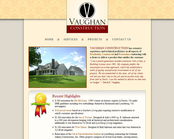task: Create website using colors from Logo. Showcase projects on every page.